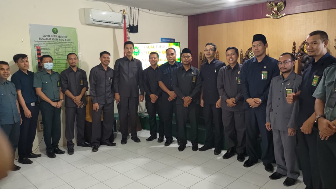 Rabu, 19 Mei 2021., Pengadilan Agama Wangi Wangi menggelar Halal Bi Halal Perayaan Hari raya Idul Fitri 1439 H . Acara dibuka dengan dengan suasana ramah dan santai di Ruang Sidang Pengadilan Agama Wangi Wangi, Acara dimulai pukul 10.30 WIB dan dihadiri oleh seluruh Hakim, Pegawai, Ibu ibu Dharmayukti Karini Pengadilan Agama Wangi Wangi.