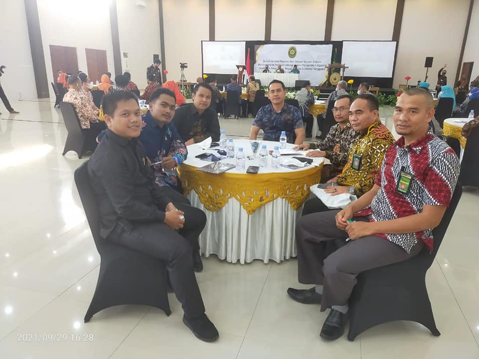 Bau Bau,- Rabu, 29 September 2021., bertempat di Villa Nirwana Buton, Bau Bau, Sulawesi Tenggara, tepat pukul 16.34 WITA, Pengadilan Agama Wangi Wangi yang beranggotakan Ketua Pengadilan Agama Wangi Wangi Bapak Andi Muh. Yusri Patawari, S.HI., M.H., Wakil Ketua Pengadilan Agama Wangi Wangi Bapak Hamsin Haruna, S.HI., Hakim PA Wangi Wangi Bapak Apep Andriana, S.Sy., Hakim PA Wangi Wangi Bapak Muhammad Rizky Fauzan, Lc., Panitera Bapak Salahudin, S.HI., M.H., Sekretaris Bapak Riswan Sofyan, S.HI., Panitera Muda Permohonan Bapak Sofian, S.HI dan Panitera Pengganti Bapak Apit Butsiyana, S.H. mengikuti acara Bedah Berkas dan Diskusi Hukum Sewilayah Pengadilan Tinggi Agama Sulawesi Tenggara.
