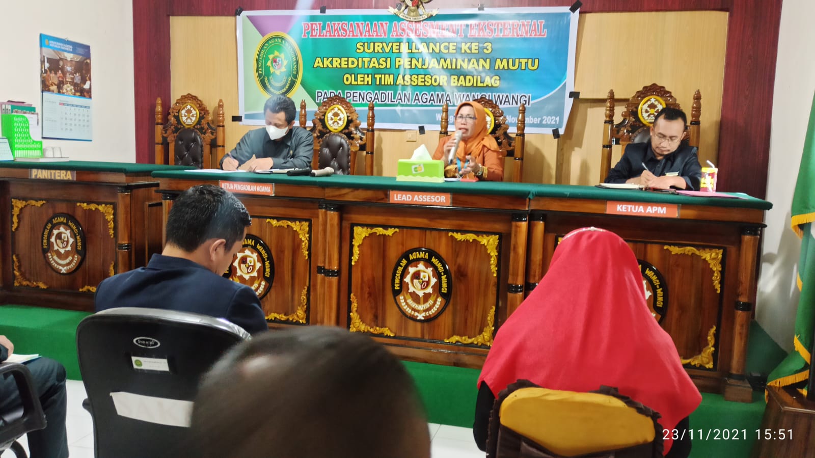 Pengadilan Agama Wangi Wangi menggelar rapat obvervasi surveilance ke-3 Akreditasi Penjaminan Mutu oleh Tim Assesor Badilag hasil Penilaian Eksternal Akreditasi Penjaminan Mutu (APM) Surveillance ke-3. Yang dipimpin oleh Hj. Kudesia, S.H. beserta pendamping Asessor Hartati,S.H.I dan Nur Rahma Baharuddin, S.SI