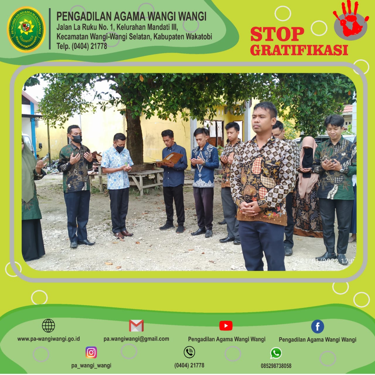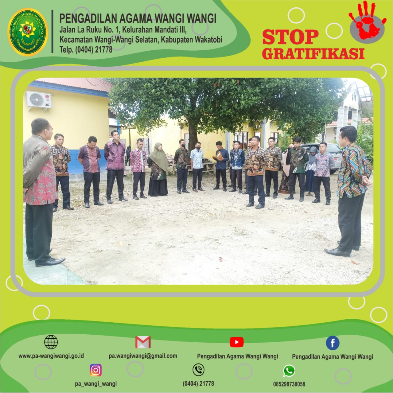 Wangi Wangi - Jumat, 21 Januari 2022. Pengadilan Agama Wangi Wangi melaksanakan Apel Sore yang dipimpin langsung Oleh Panitera Pengadilan Agama Wangi Wangi, Bpk. Salahudin, S.HI., M.H., Dalam kesempatan ini beliau menyampaikan amanat agar memperhatikan pelaporan pelaporan Badilag yang serba elektronik.