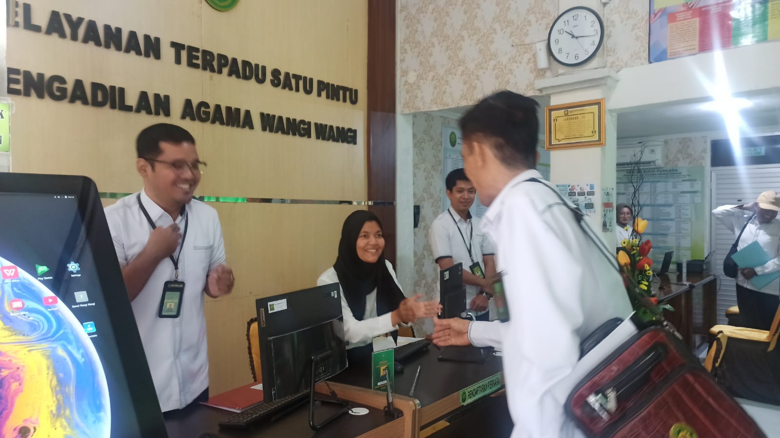 Kedatangan YM. Wakil Ketua Pengadilan Tinggi Agama Kendari pada Kantor Pengadilan Agama Wangi Wangi disambut antusitas seluruh aparatur pada Pengadilan Agama Wangi Wangi.